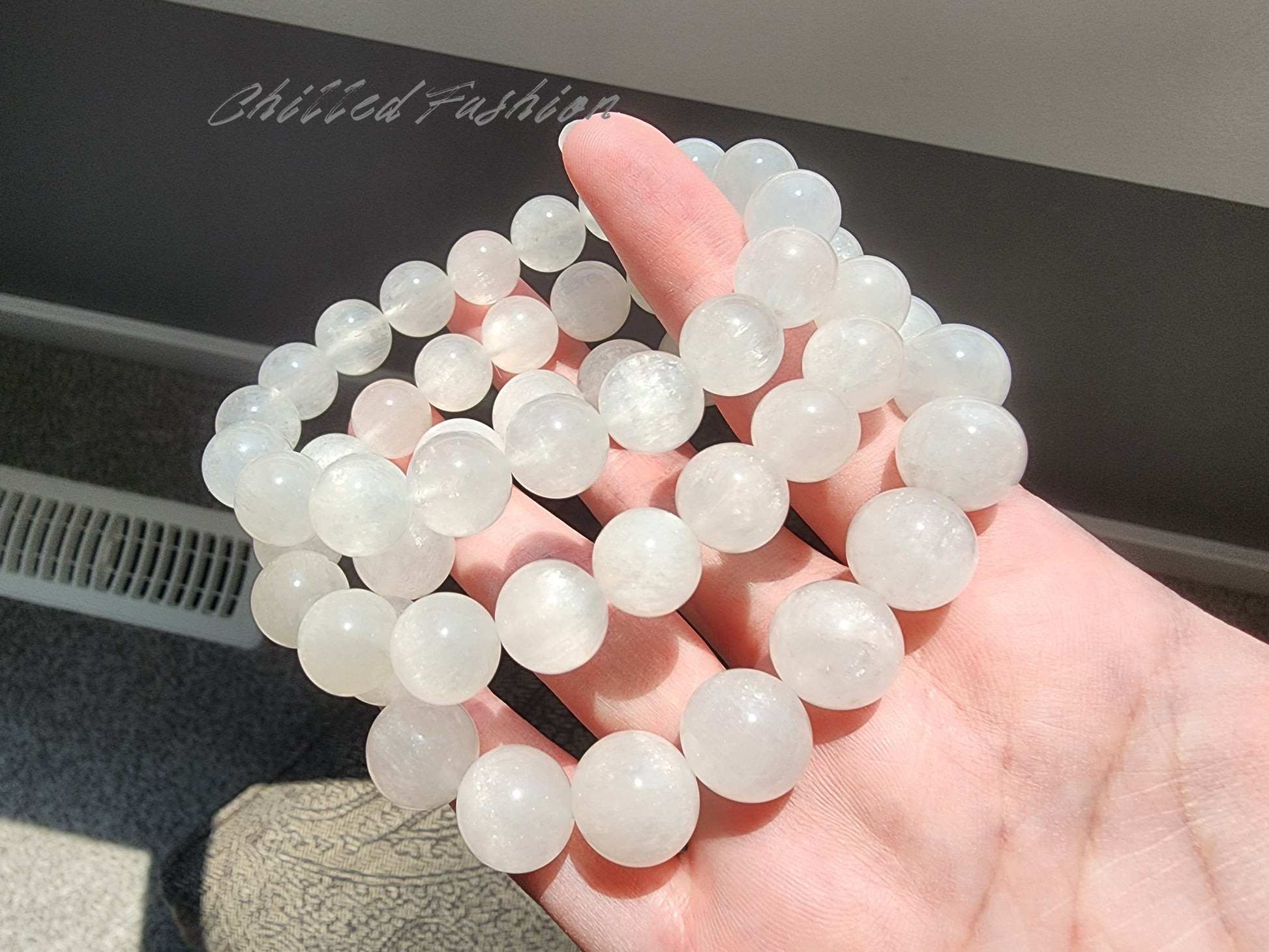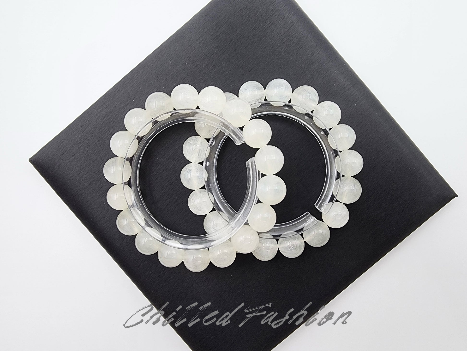 This White Rabbit Hair-like Feldspar bracelet features naturally soft, fibrous patterns that resemble delicate strands of rabbit fur, giving each bead a gentle, dreamy texture. The milky white tones and silky shimmer create an elegant, serene aesthetic that pairs beautifully with any style. Feldspar is traditionally associated with clarity, emotional balance, and inner peace—making this bracelet not only visually calming but also symbolically meaningful. Whether you're drawn to its unique texture or its tranquil energy, this piece is a versatile addition to any crystal lover’s collection.