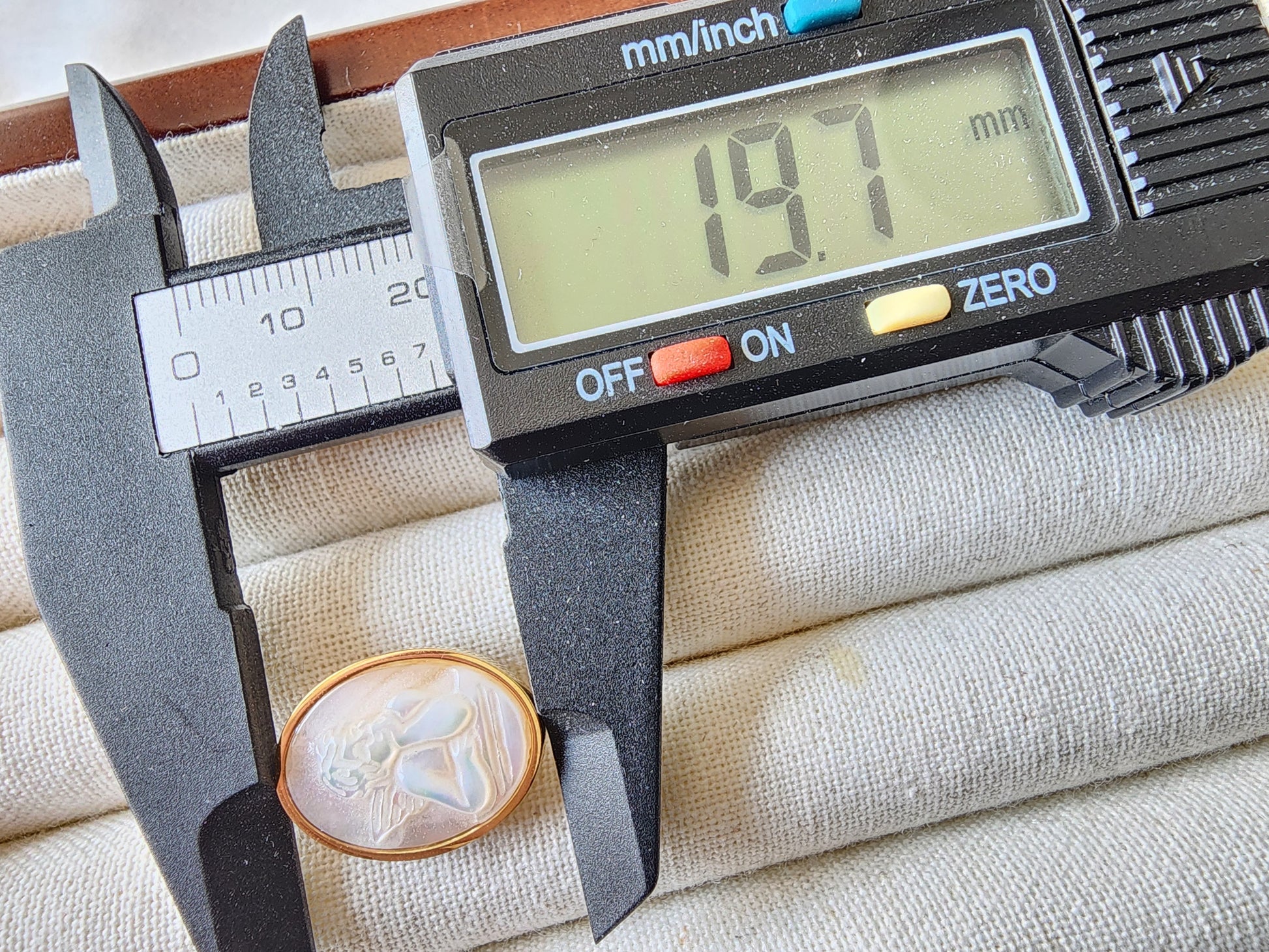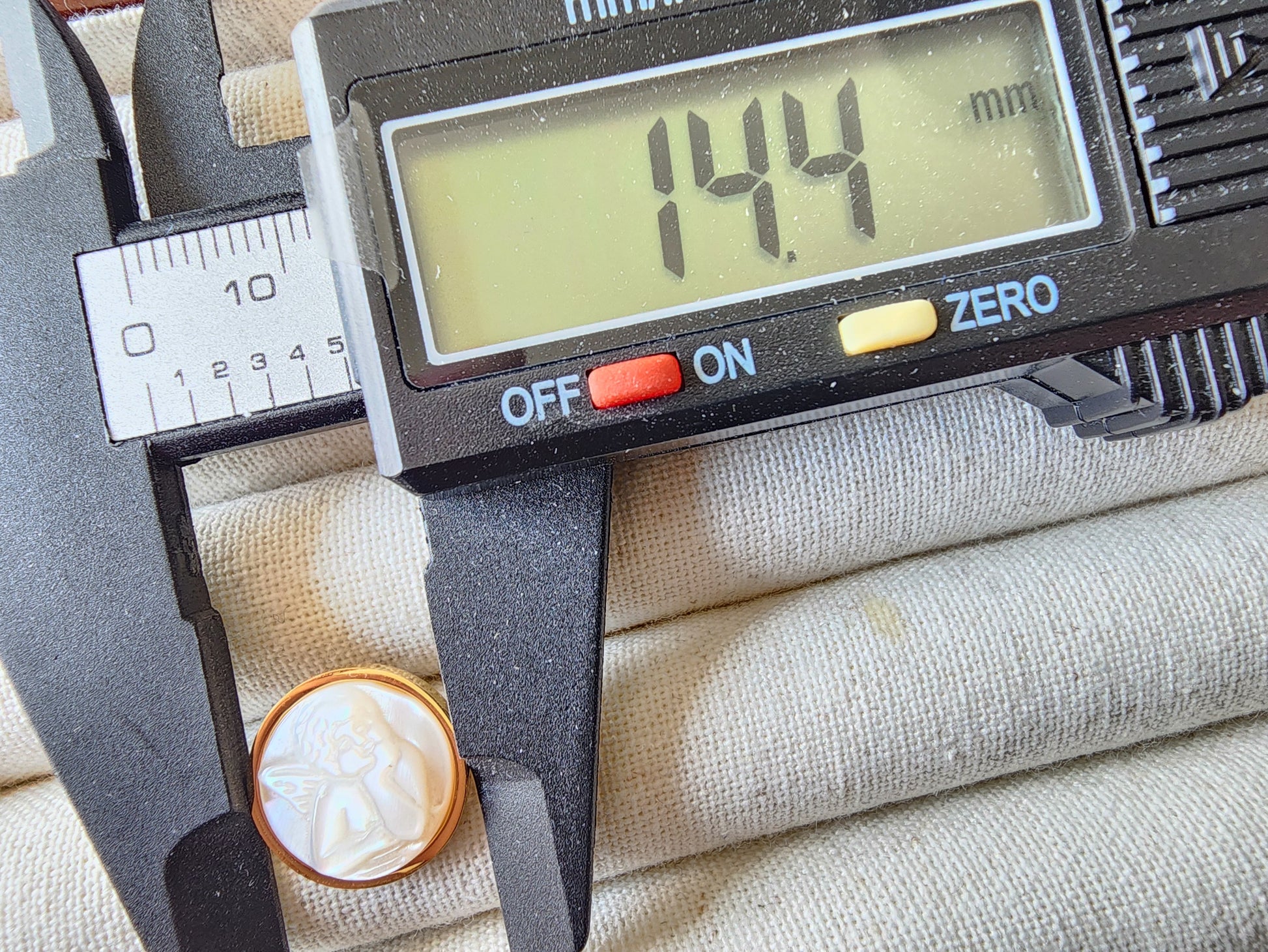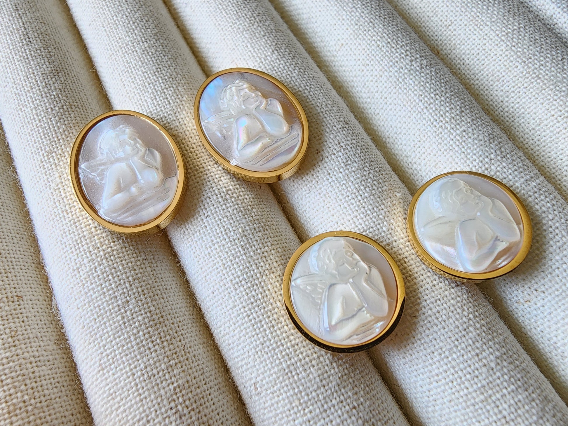 These stunning stud earrings feature intricately engraved angels on a lustrous mother of pearl surface. The metal part of the earrings is made of gold plated brass, adding a touch of elegance and sophistication. Perfect for any occasion, these earrings are sure to make a statement and add a touch of heavenly charm to any outfit.