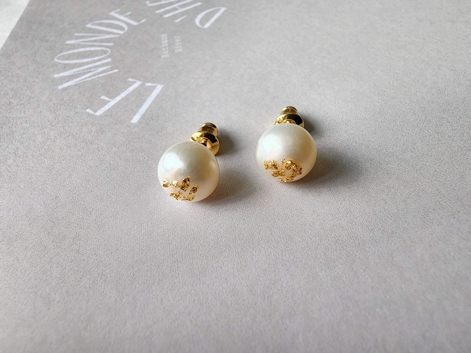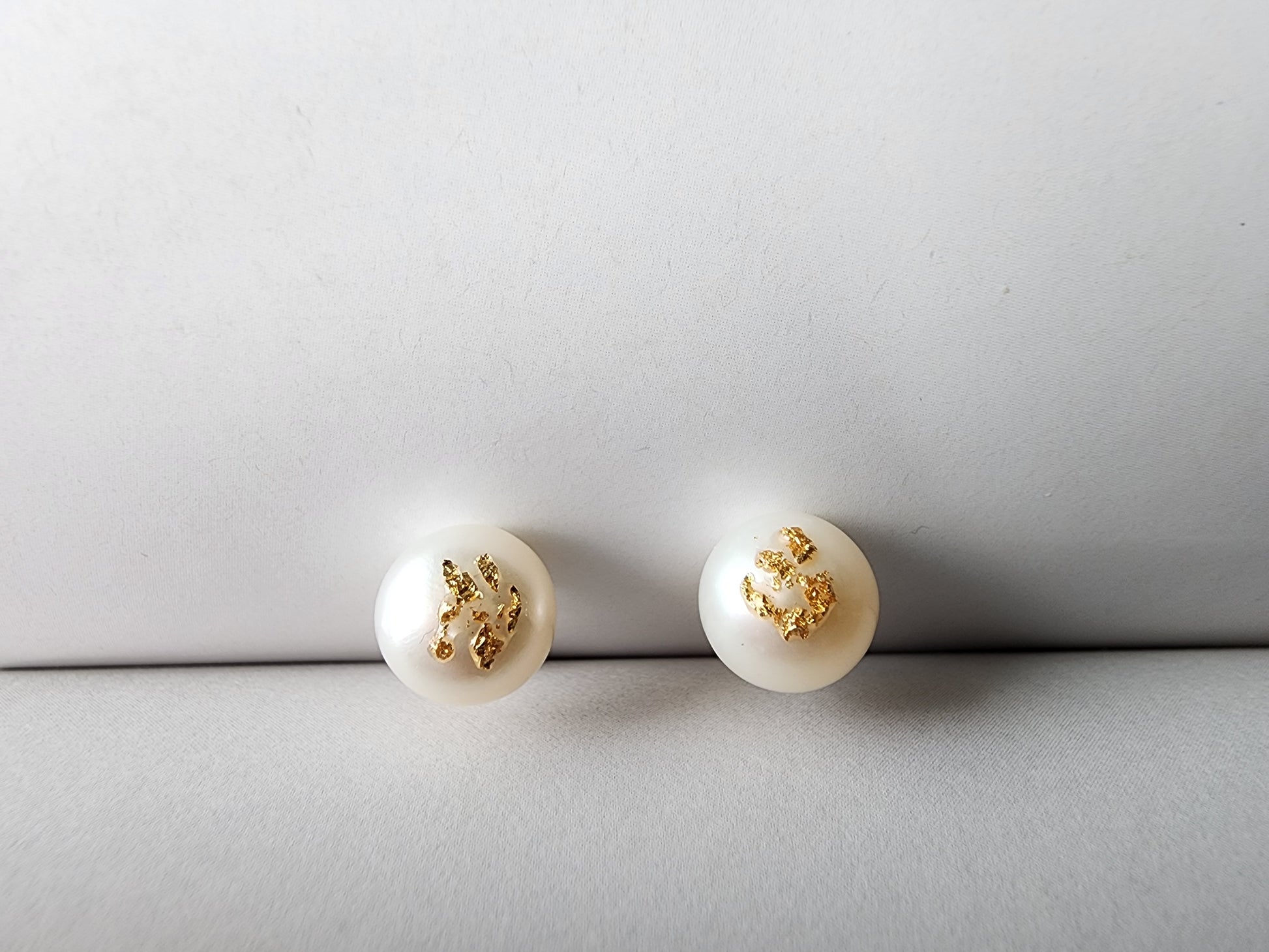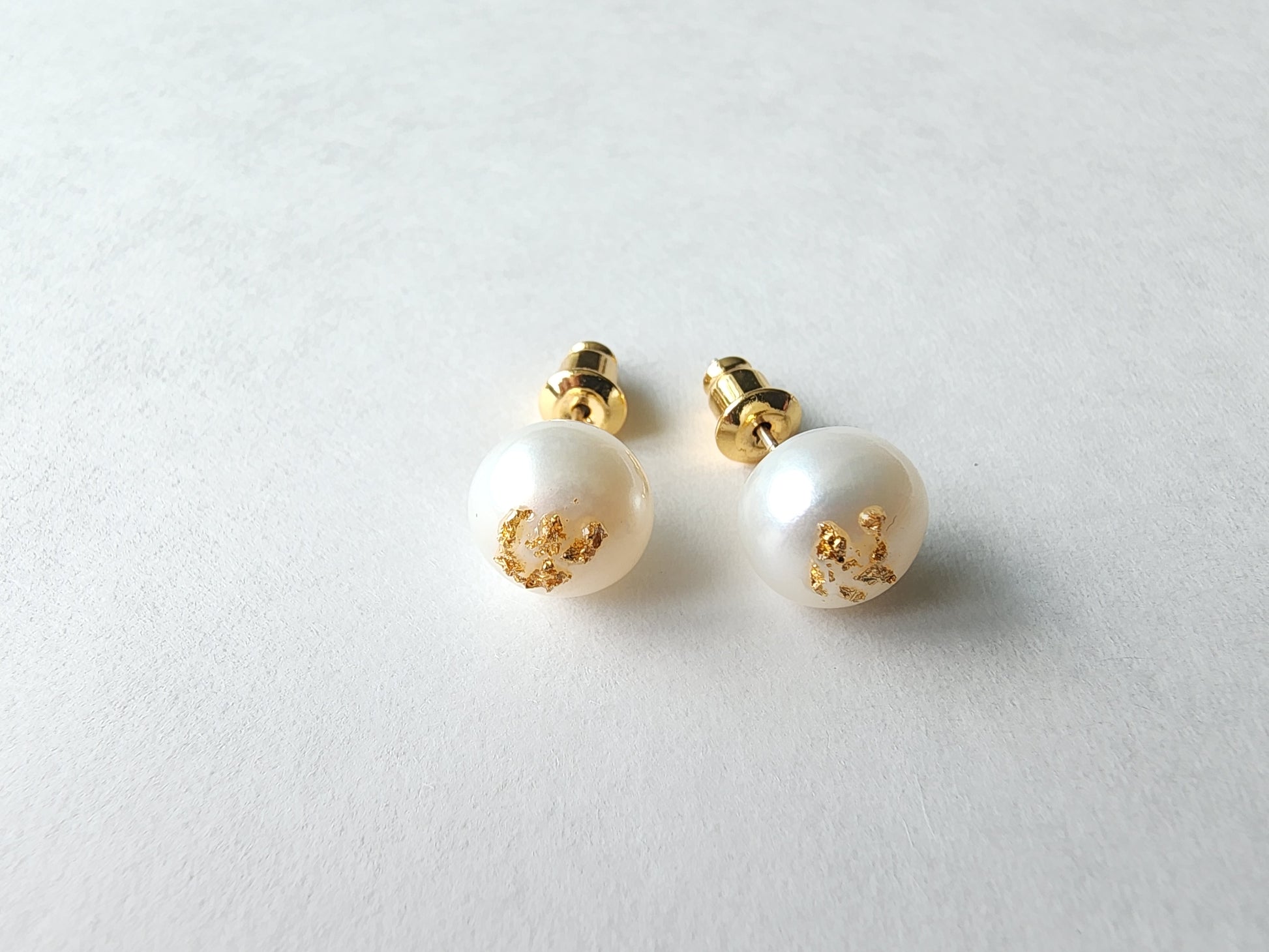 [Earrings] Elegant 8mm Freshwater Pearl Stud Earrings with Gold Foil and Sterling Silver Posts