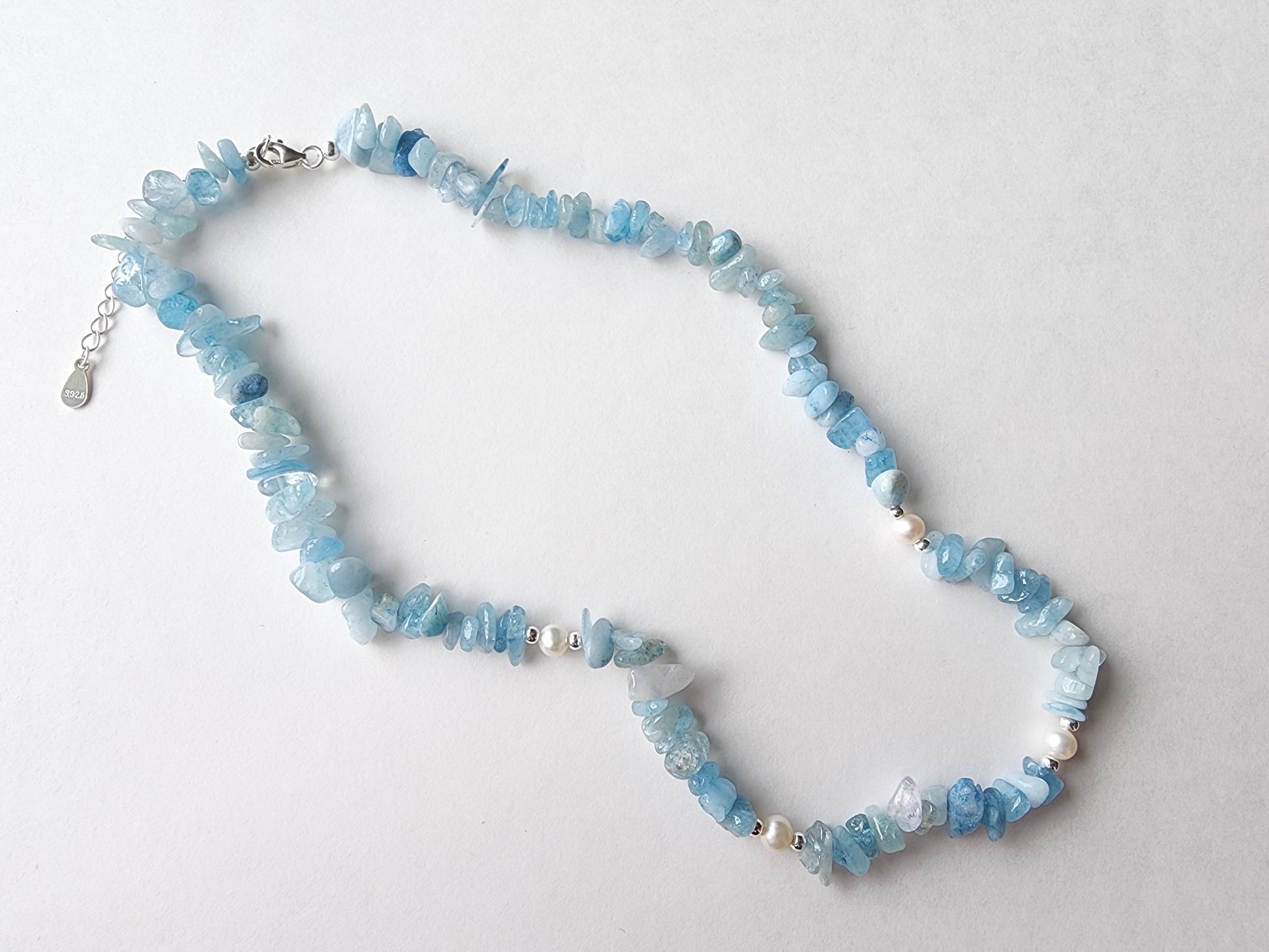 Materials - Aquamarine, Freshwater Pearl and Sterling Silver (925 Silver)