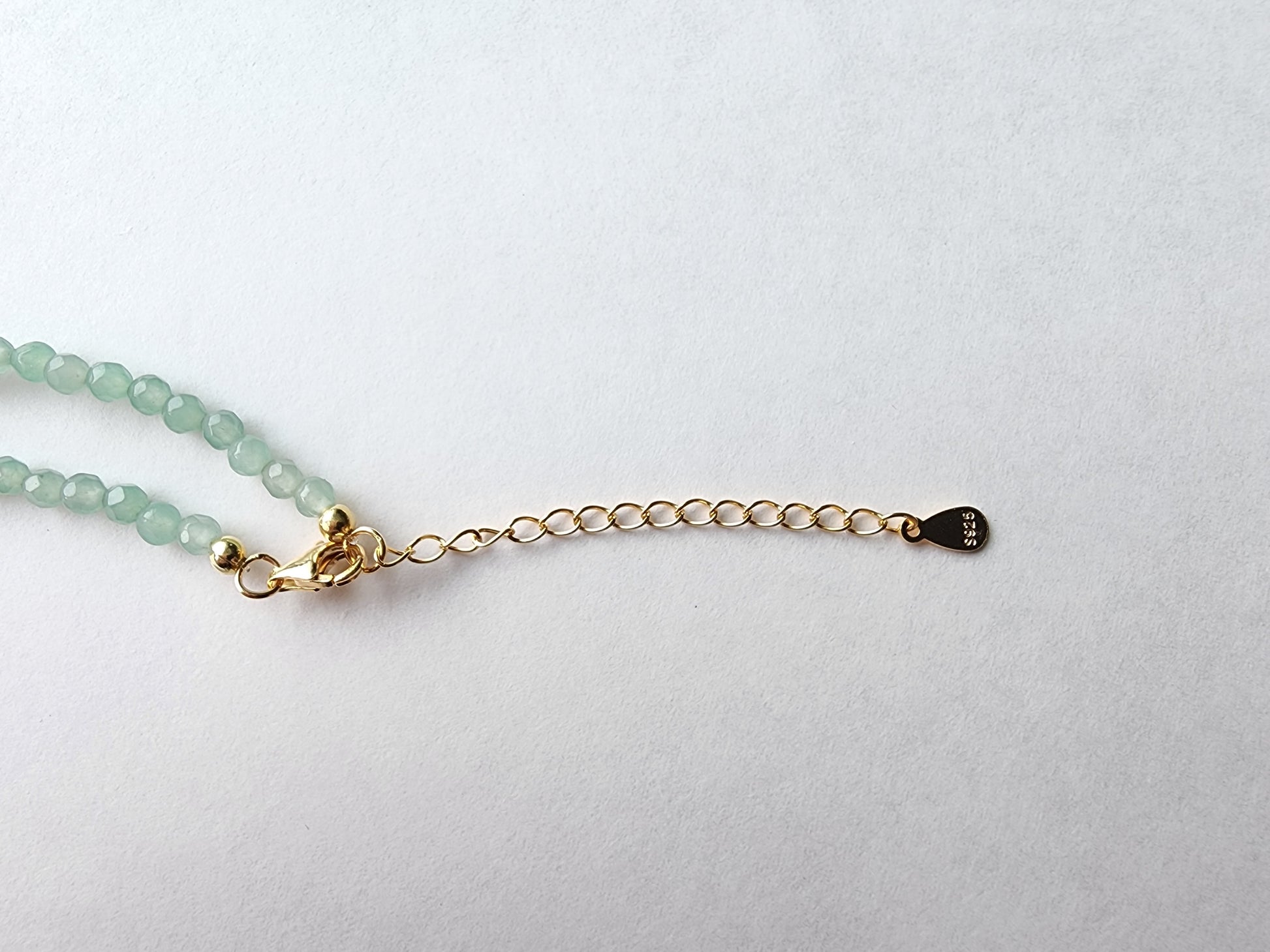 This elegant necklace is made of light green and white quartz beads, freshwater pearls, and sterling silver (925 silver). The combination of the soft green and white colors of the quartz beads, the lustrous pearls, and the shine of the sterling silver creates a beautiful and sophisticated piece of jewelry. Perfect for adding a touch of elegance to any outfit, this necklace is especially well-suited for complementing a bright and vibrant Dopamine Dressing ensemble or for adding some sparkle to your summer vacation wardrobe. Add some joy to your wardrobe with this stunning necklace!