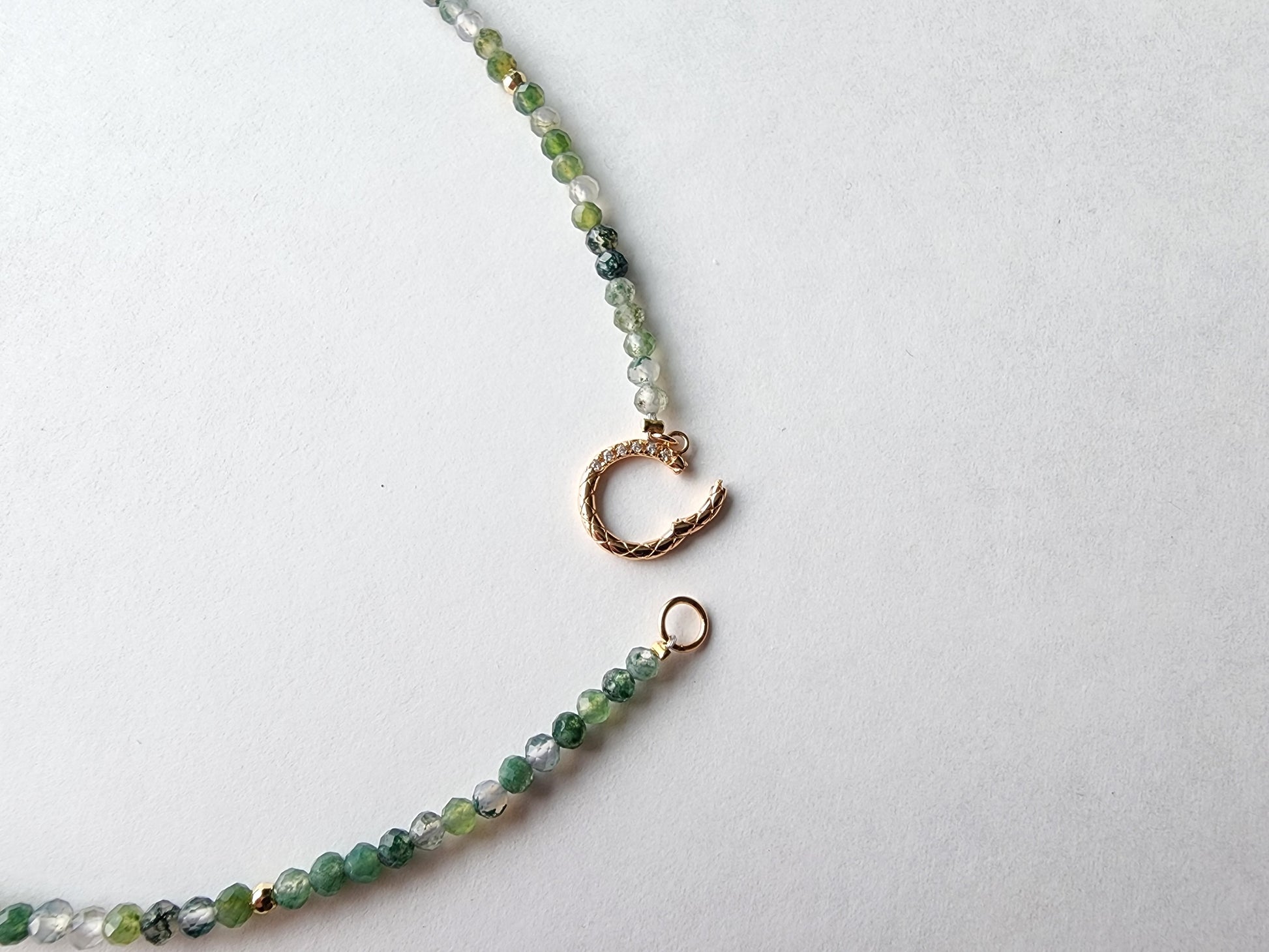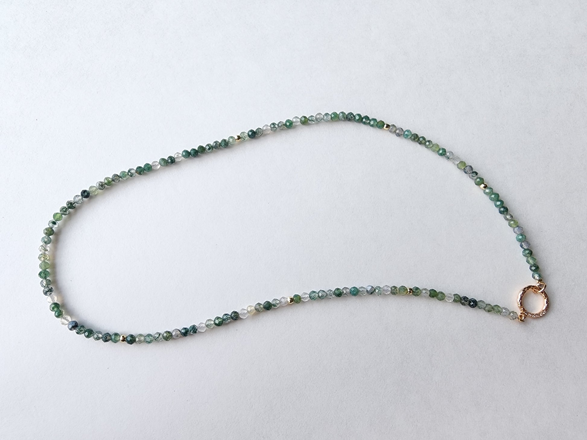 [Necklace] Moss Agate Bead Necklace with Sterling Silver Accents