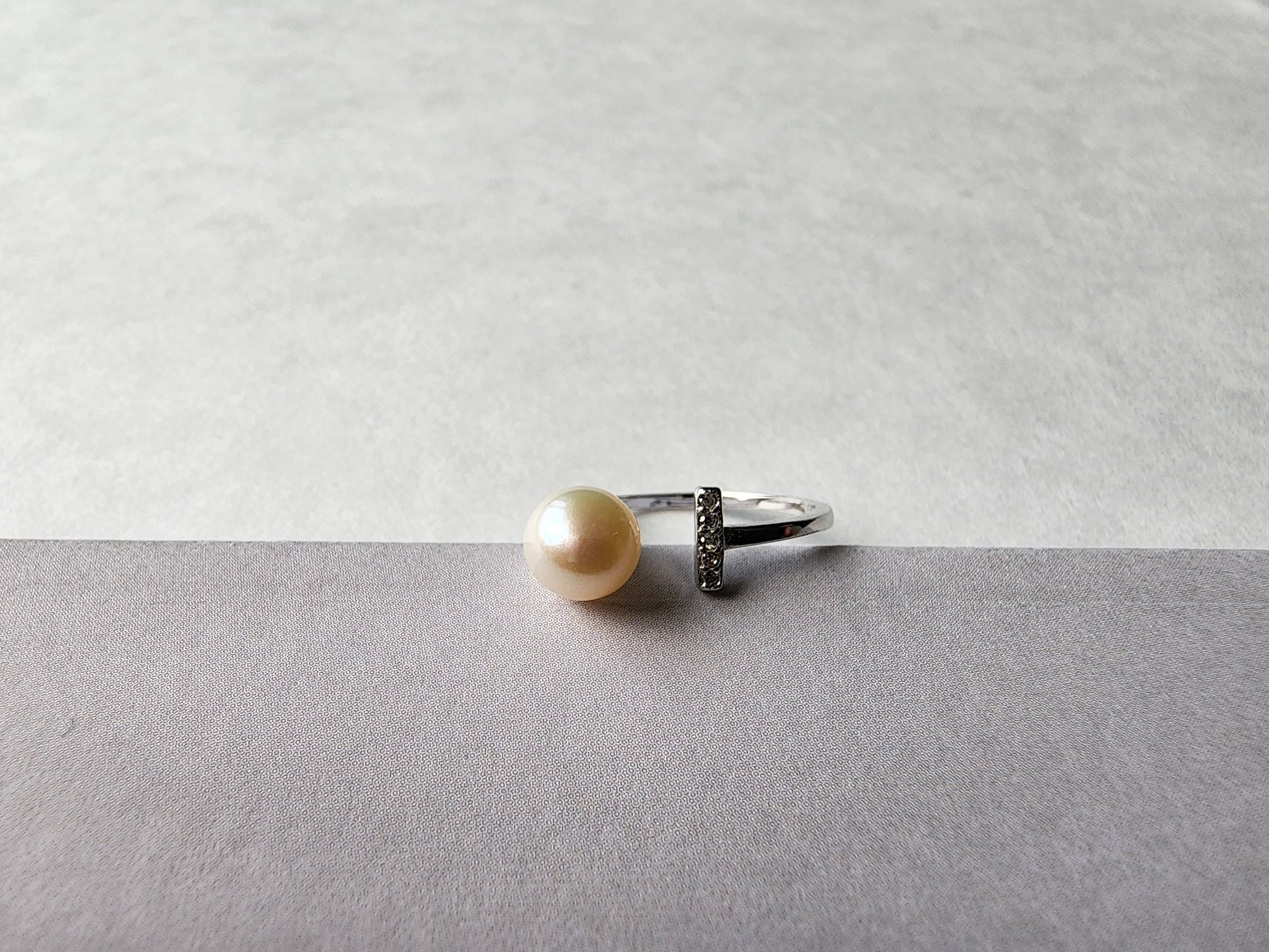 [Ring] Sterling Silver Open Ring with Freshwater Pearl and Zirconia Bar