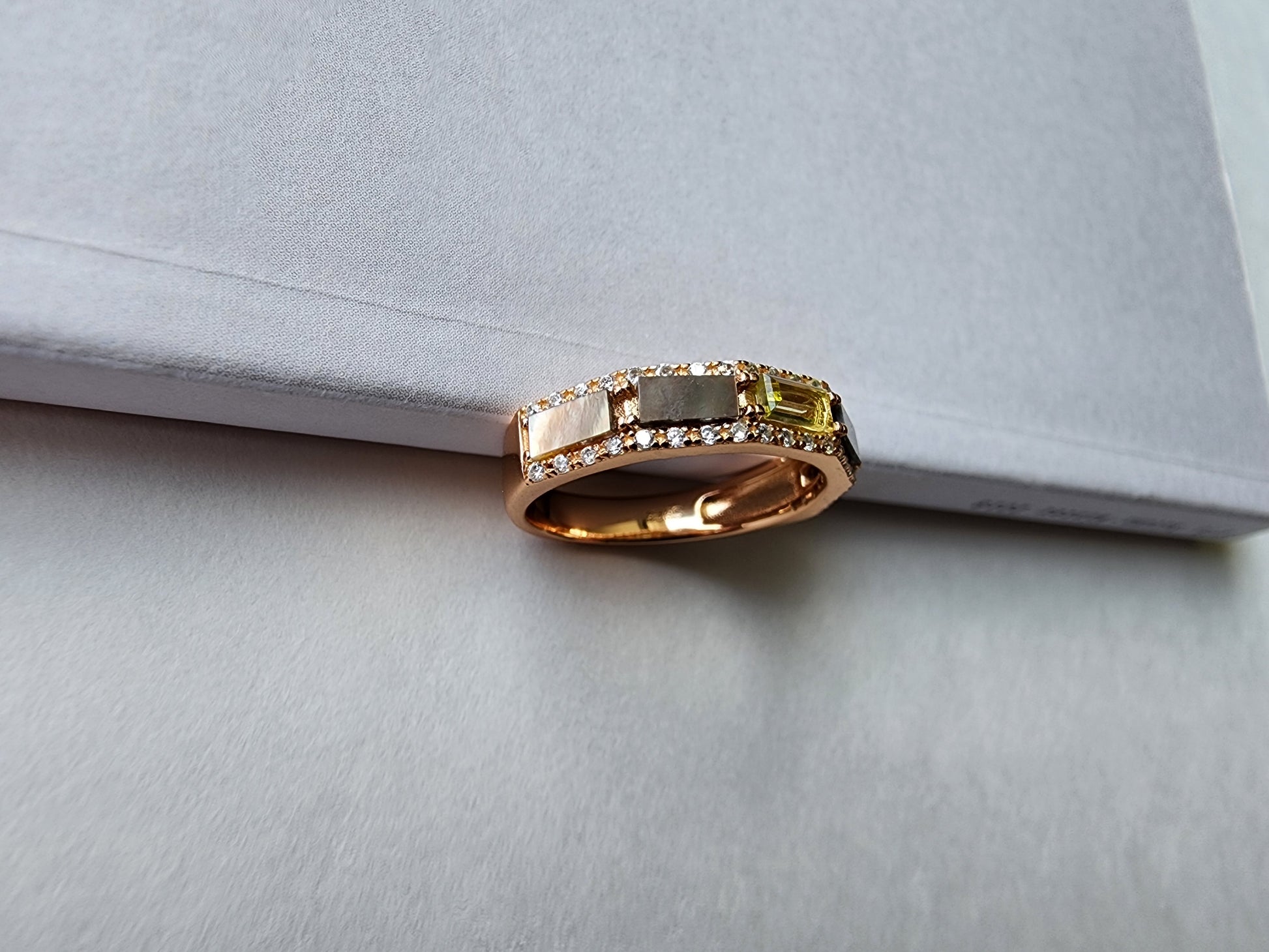[Ring] Sterling Silver Ring with Rectangle Olivine and Black Mother of Pearl