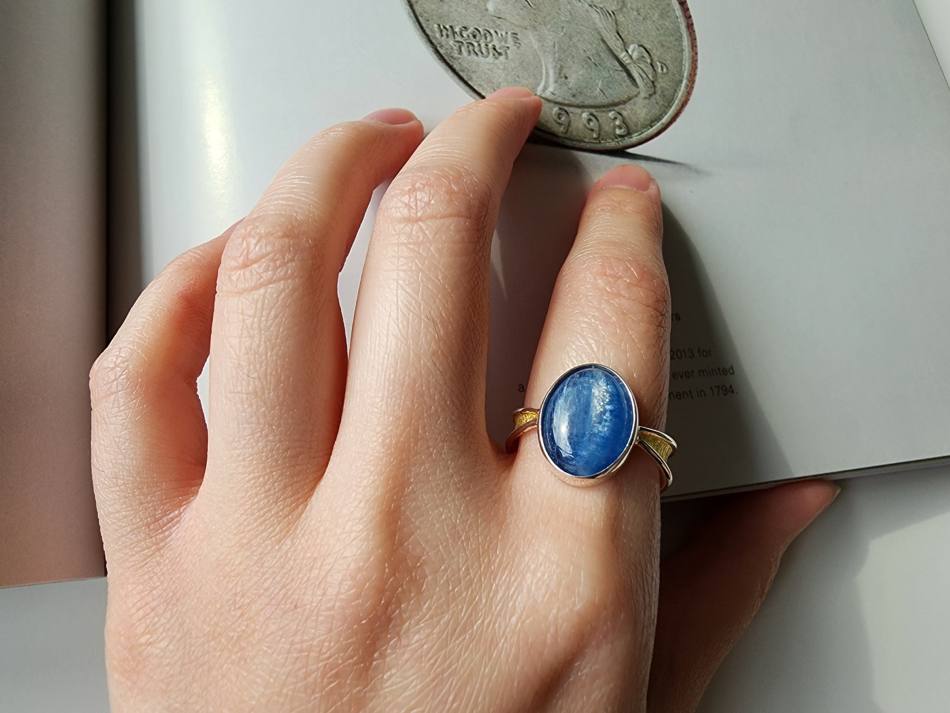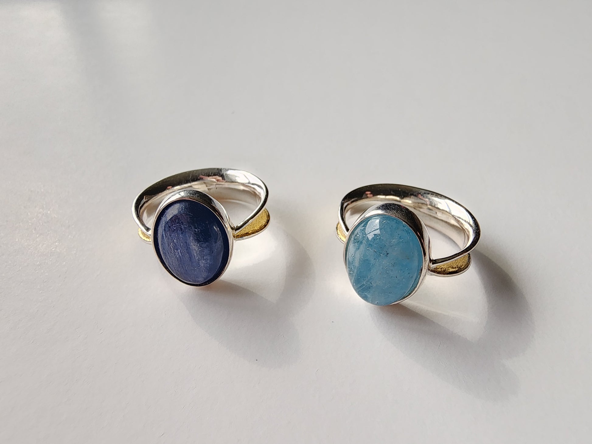 This elegant solitaire ring is made of sterling silver (925 silver) and features an oval-shaped natural stone. Choose between a beautiful Aquamarine or Kyanite stone to make this ring truly your own. The simple yet timeless design makes it the perfect accessory for any occasion.