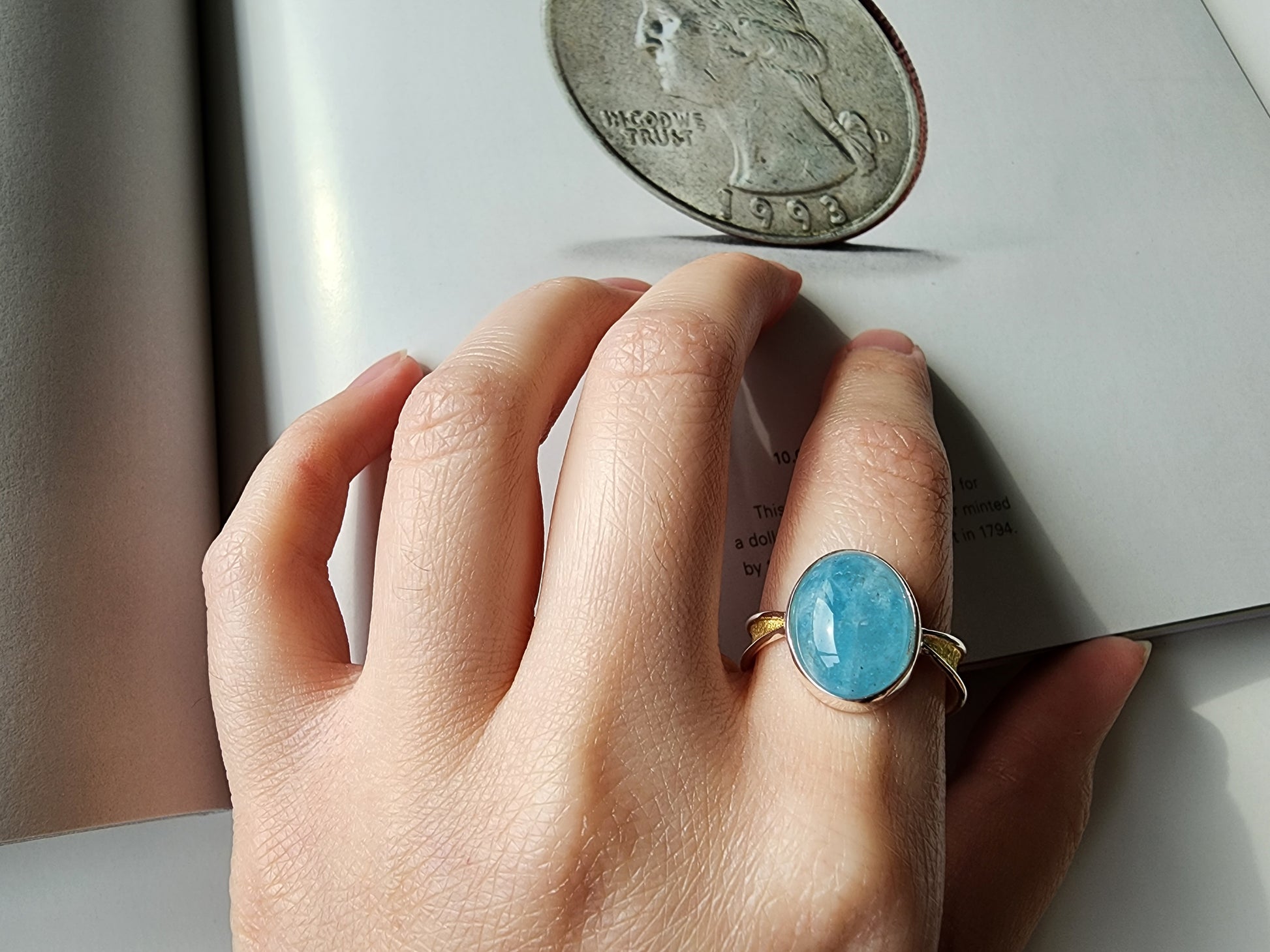 [Ring] Sterling Silver Solitaire Ring with Natural Aquamarine or Kyanite Stone