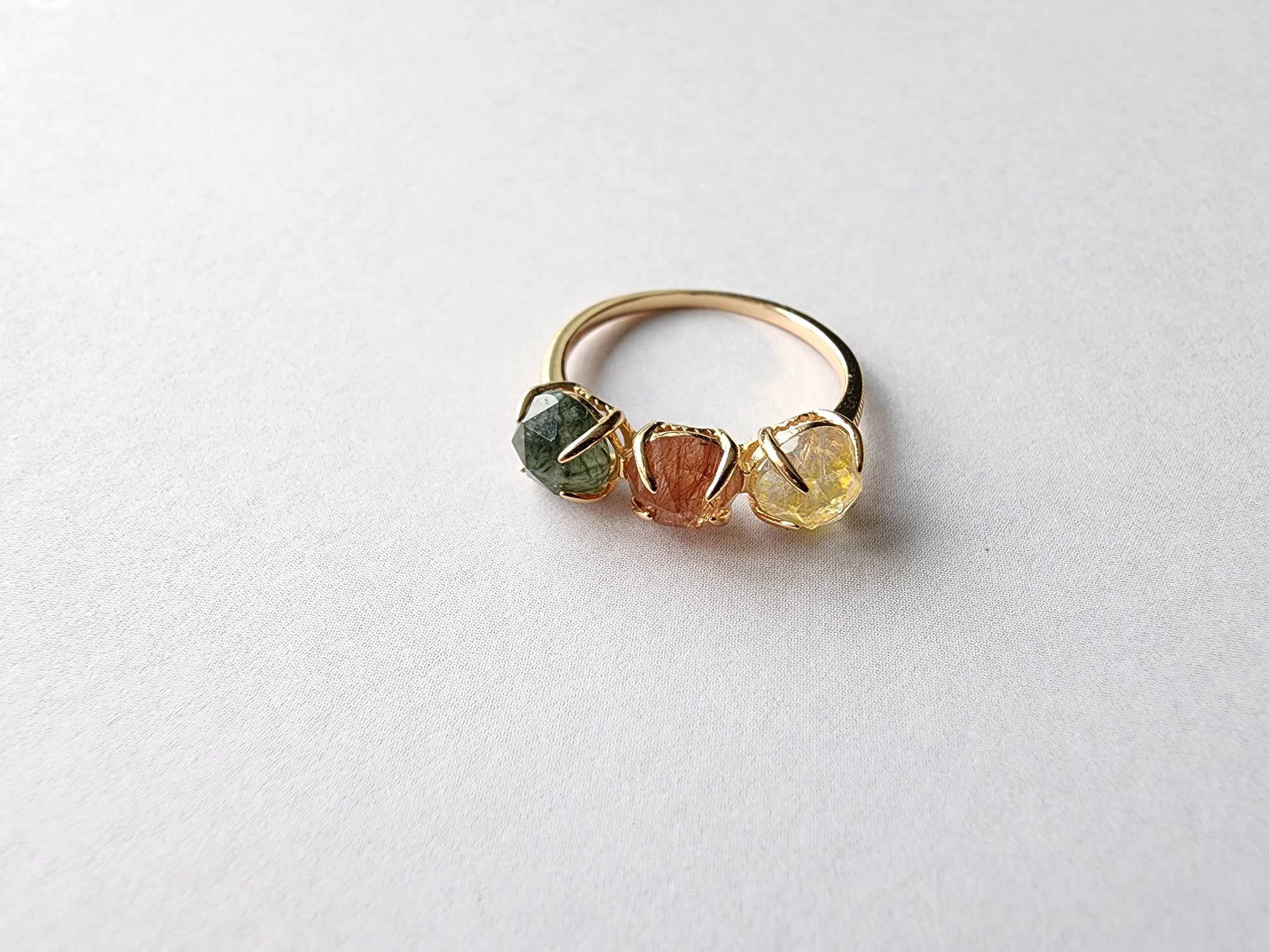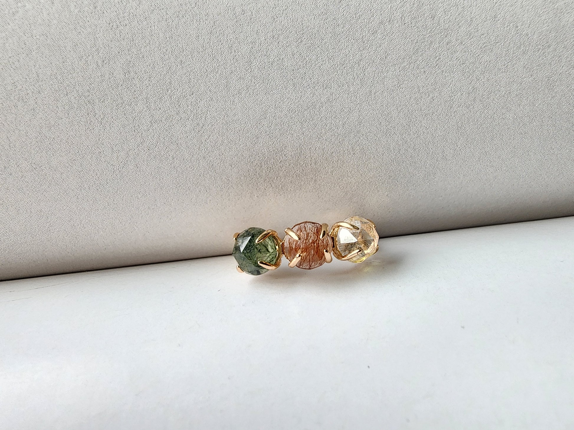[Ring] Tri-Colored Rutilated Quartz Sterling Silver Ring - A Symphony of Elegance