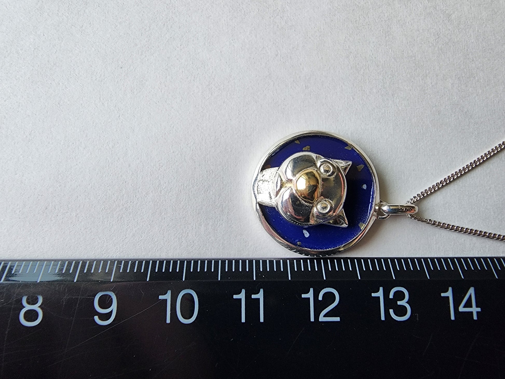 [Necklace] Sterling Silver Cat Selfie Pendant Necklace with Artificial Lapis Lazuli