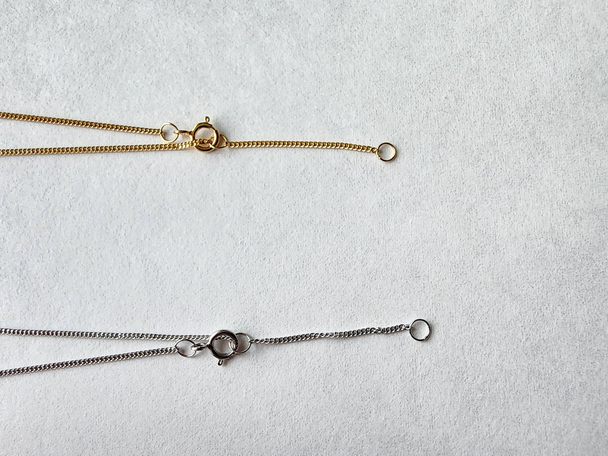 The chain measures 43cm in length and features an adjustable loop at 40cm, allowing you to easily switch between the two lengths for added versatility.